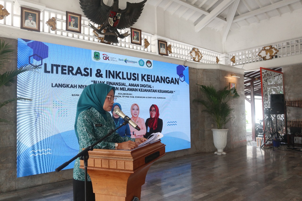 KUNINGAN,— Ketua Tim Penggerak Pemberdayaan dan Kesejahteraan Keluarga (TP PKK) Kabupaten Kuningan, Hj. Ela Helayati, S.Sos., yang akrab disapa Bunda El, mengajak seluruh perempuan Kuningan untuk semakin bijak dan cerdas dalam mengelola keuangan di era digital. Hal itu disampaikan dalam kegiatan Literasi dan Inklusi Keuangan bertema “Bijak Finansial, Aman Digital: Langkah Nyata Perempuan Melawan Kejahatan Keuangan”, yang digelar di Pendopo Kabupaten Kuningan, Senin 27 Oktober 2025.
