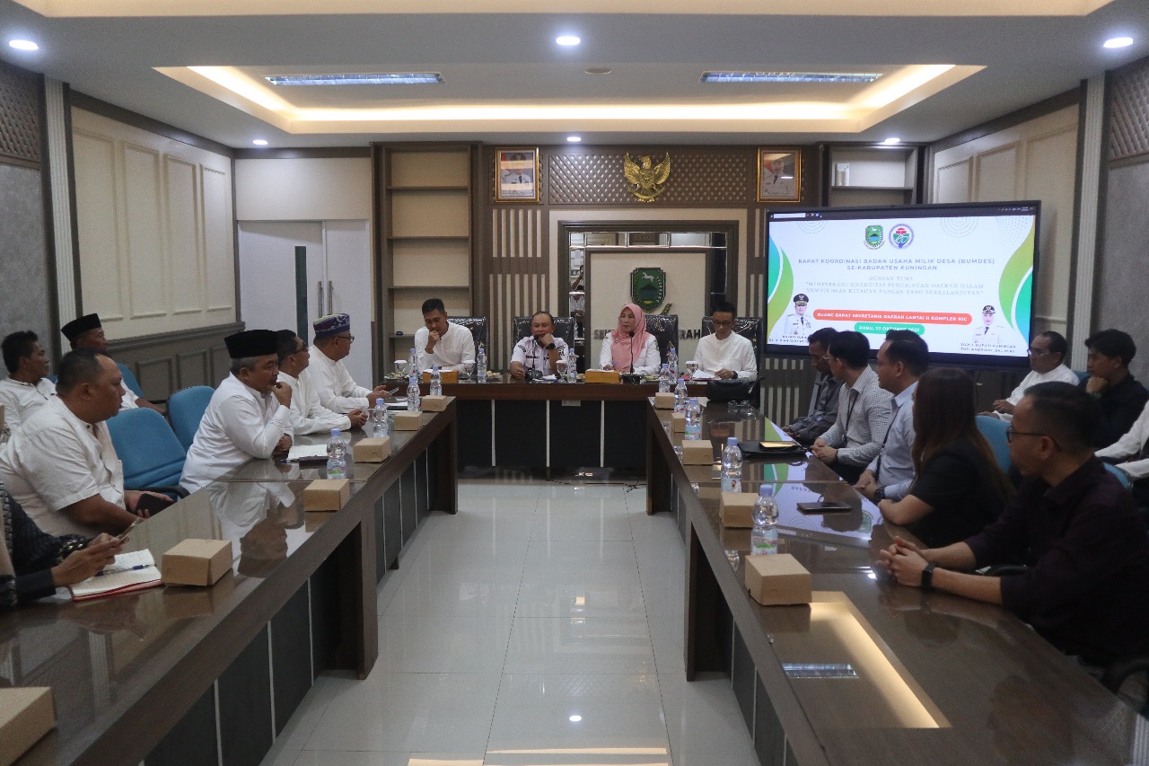 KUNINGAN,— Pemerintah Kabupaten Kuningan menggelar Rapat Koordinasi BUMDes se-Kabupaten Kuningan dengan tema “Memperkuat Sinergitas Pemerintah Daerah dalam Mewujudkan Ketahanan Pangan yang Berkelanjutan”, bertempat di Ruang Rapat Lantai 2 Sekretariat Daerah Kabupaten Kuningan, Rabu 22 Oktober 2025.