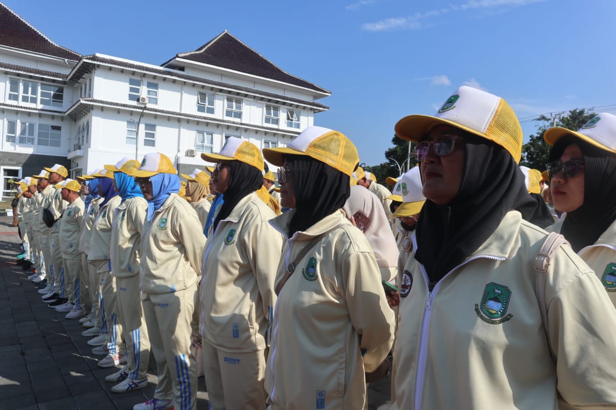 KUNINGAN – Pemerintah Kabupaten Kuningan resmi melepas kontingen yang akan berlaga pada ajang Pekan Olahraga dan Seni Antar Daerah Perbatasan (PORSENITAS) ke-XII di Kabupaten Indramayu serta Pekan Olahraga Nasional Korpri (PORNAS KORPRI) ke-XVII di Palembang. Kegiatan pelepasan berlangsung dalam apel pagi Pemkab Kuningan di Lapangan Setda Baru Kuningan Islamic Center (KIC), Senin (6/10/2025).