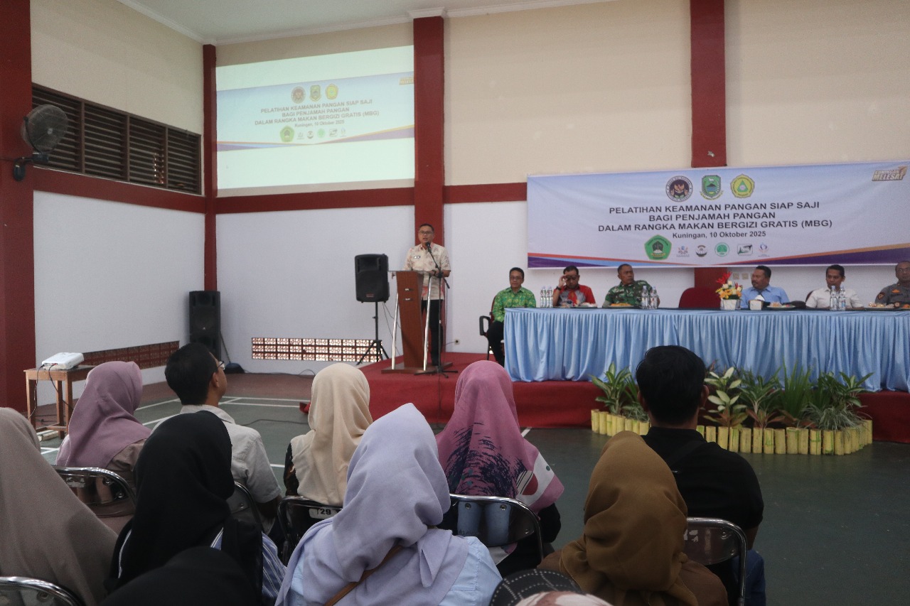 KUNINGAN, 10 Oktober 2025 — Pemerintah Kabupaten Kuningan kembali menegaskan komitmennya dalam menjamin keamanan, higienitas, dan kualitas gizi makanan bagi anak-anak sekolah. Penegasan ini disampaikan oleh Penjabat Sekretaris Daerah Kabupaten Kuningan sekaligus Ketua Satgas Makanan Bergizi Gratis (MBG) Kabupaten Kuningan, Dr. Wahyu Hidayah, M.Si., saat membuka Training Sertifikasi Laik Higienis Sanitasi (SLHS) bagi karyawan Satuan Pelayanan Pemenuhan Gizi (SPPG) yang diselenggarakan oleh Yayasan Pendidikan Islam Ar-Raswad di Cikaso, Kecamatan Japara, Jumat (10/10/2025).