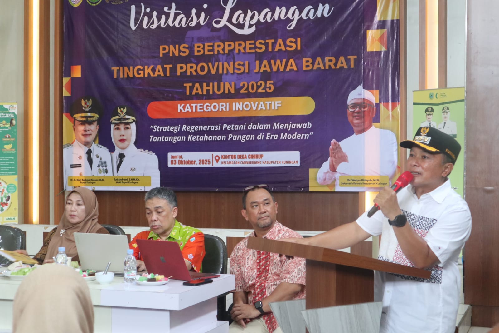 KUNINGAN, – Tahap ketiga Seleksi PNS Berprestasi Tingkat Provinsi Jawa Barat Tahun 2025 resmi digelar di Kantor Desa Cihirup, Kabupaten Kuningan, Jumat (3/10/2025). Agenda visitasi lapangan ini menjadi penentu siapa saja yang berhak masuk ke enam besar sebelum melenggang ke penjaringan tiga besar.