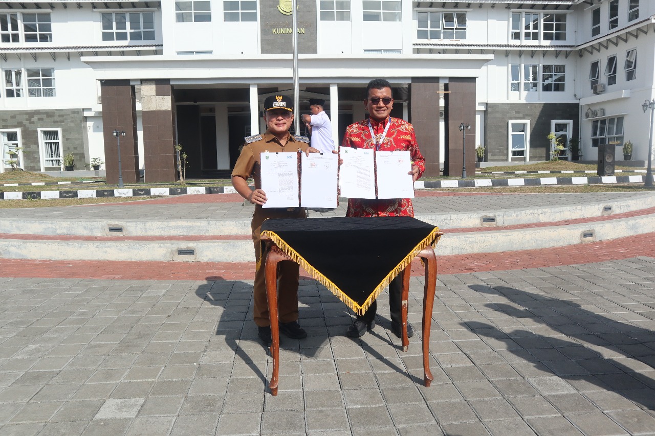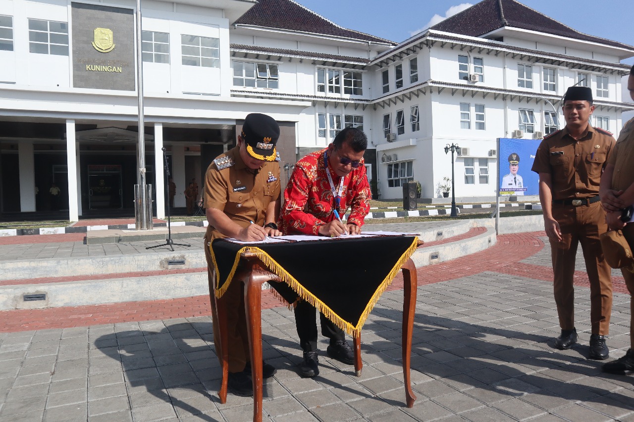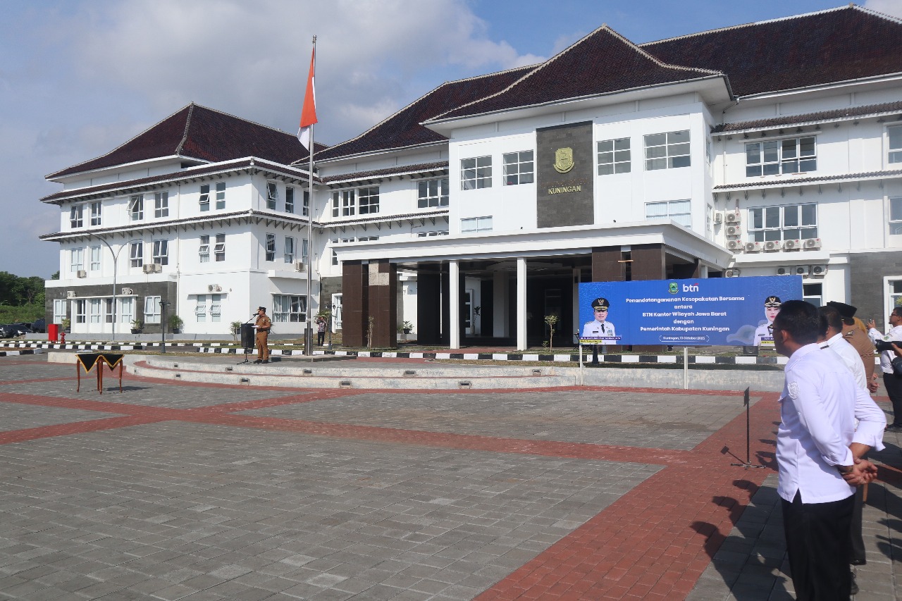 KUNINGAN, — Pemerintah Daerah Kabupaten Kuningan menjalin kerja sama strategis dengan Bank Tabungan Negara (BTN) Kantor Wilayah Jawa Barat dalam upaya memperkuat sistem transaksi keuangan daerah dan memperluas akses layanan perbankan bagi masyarakat. Penandatanganan perjanjian kerja sama tersebut dilaksanakan usai kegiatan Apel Pagi di Lapangan Setda Kuningan Islamic Center (KIC), Senin 13 Oktober 2025.