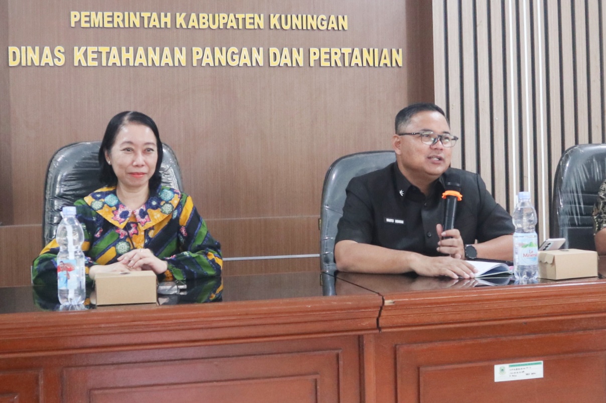 Kegiatan ini dihadiri oleh Pj. Sekretaris Daerah Kabupaten Kuningan seklaigus Kepala Dinas Ketahanan Pangan dan Pertanian Dr. Wahyu Hidayah, M.Si., Kepala Pusat Penilaian dan Pengembangan Kompetensi ASN Pertanian, Indira Fitriani, S.H., M.A.P., yang juga bertindak sebagai Penanggung Jawab Brigade Pangan Jawa Barat, bersama perwakilan pejabat struktural dan fungsional lingkup Dinas Ketahanan Pangan dan Pertanian Kabupaten Kuningan serta para koordinator penyuluh pertanian wilayah optimalisasi lahan.