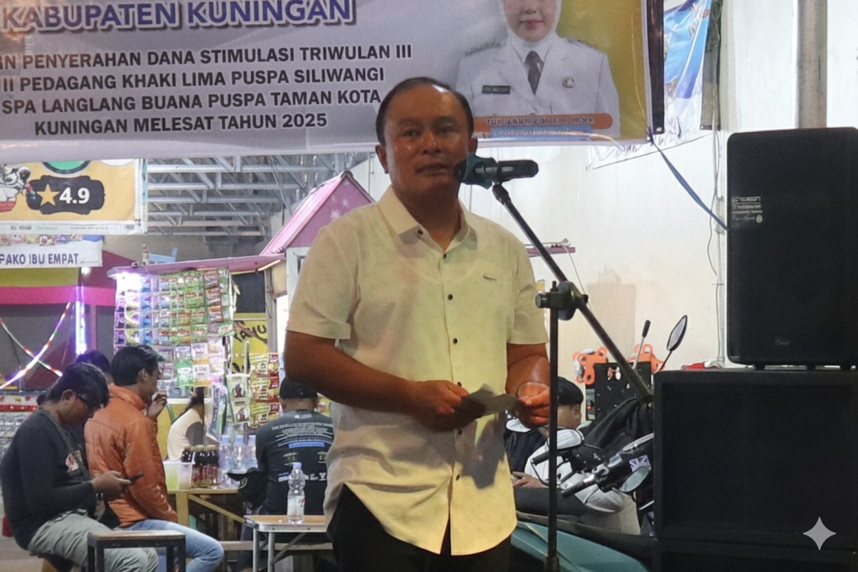 KUNINGAN, — Di tengah upaya Pemerintah Kabupaten Kuningan memperkuat fondasi ekonomi rakyat, keberpihakan terhadap pelaku usaha mikro dan pedagang kaki lima (PKL) terus menjadi perhatian serius. Komitmen tersebut kembali diwujudkan melalui penyerahan dana stimulan triwulan III bagi para PKL di tiga PUSPA. Pusat Kuliner Rakyat tersebut yakni Siliwangi, Langlang Buana, dan Taman Kota Kuningan, yang digelar pada Jumat malam, 17 Oktober 2025, di PUSPA Siliwangi.