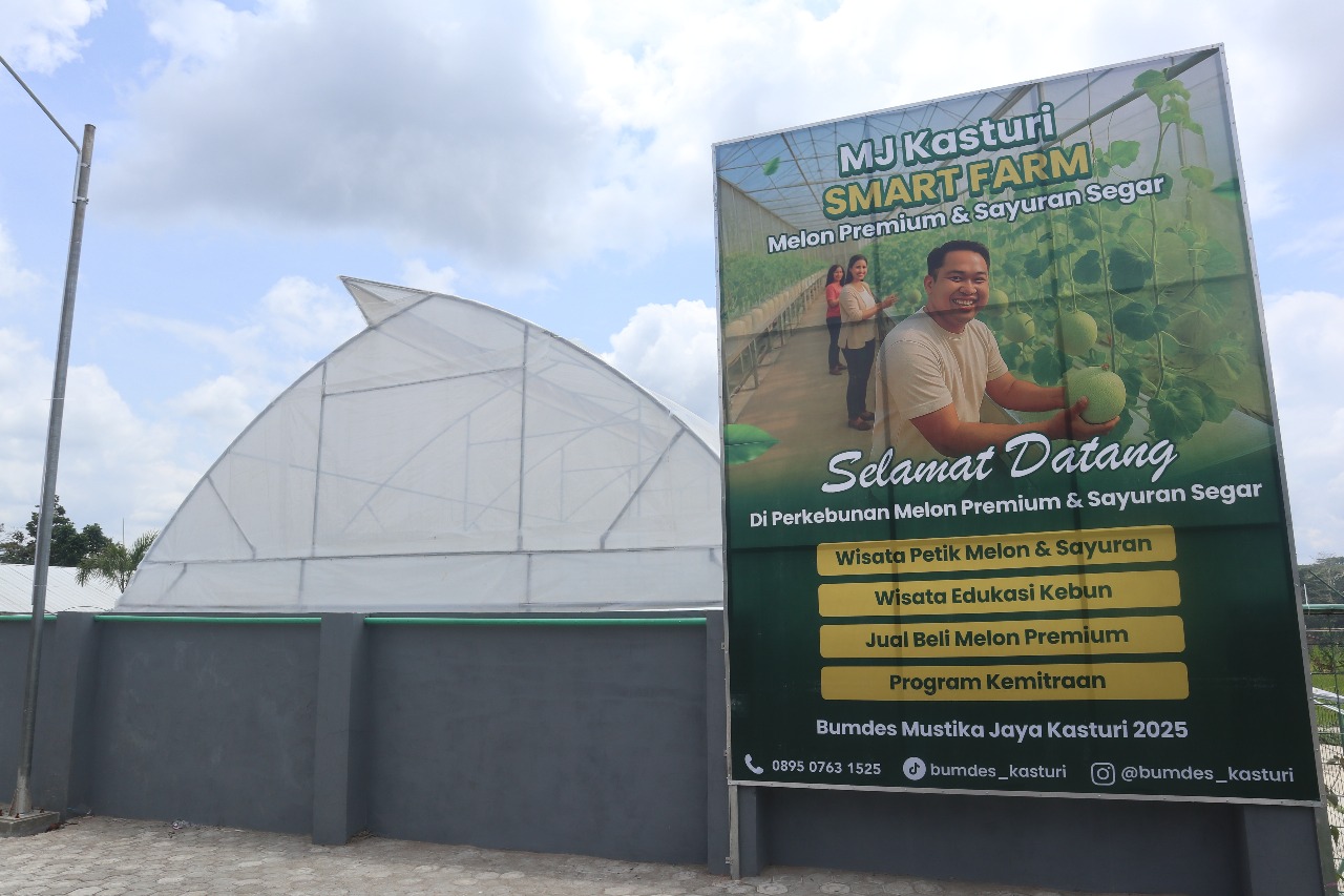 Kegiatan ini menjadi refleksi nyata bagaimana desa mampu bertransformasi menjadi pusat inovasi pangan berbasis potensi lokal. Greenhouse yang dikelola oleh BUMDes Mustika Jaya ini dibangun melalui alokasi 20 persen Dana Desa Kasturi untuk mendukung program ketahanan pangan. Inovasi tersebut diwujudkan melalui budidaya melon premium dengan enam varietas unggulan, yaitu Intanon, Fujisawa, Hamigua, Dalmation, Lavender, dan Cantaloupe.